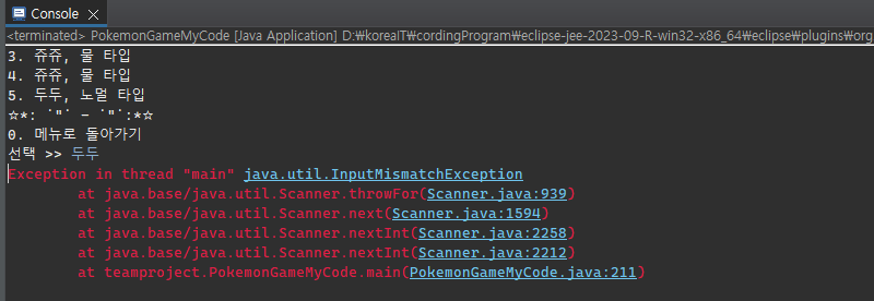 이 경우 try-catch를 통해 해당 오류가 발생할 시 다시 입력값을 받도록 할 수 있다.